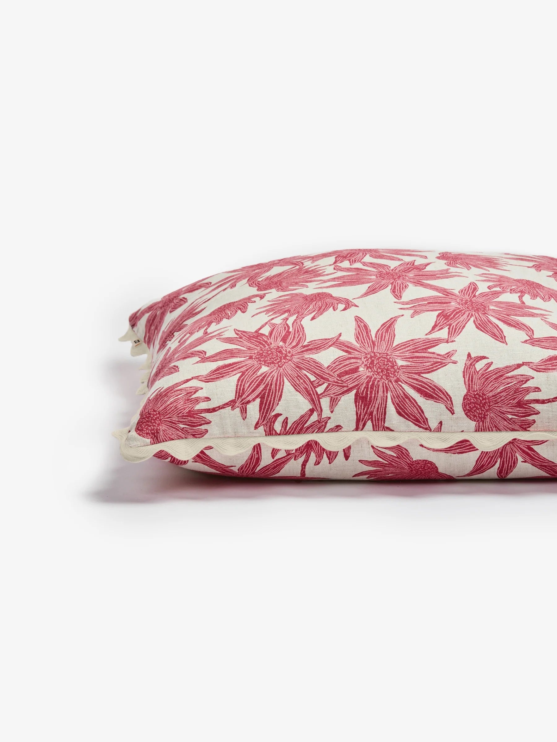 Inspired by the delicate beauty of Australian flannel flowers, our Flannel Flower Pink cushion brings a sense of warmth and sophistication to your space. The intricate relief-style detailing, reminiscent of traditional woodcutting techniques, highlights the striking floral design, creating an organic yet structured aesthetic. Perfect for layering on a neutral-toned sofa or pairing with rich hues of cerise, burgundy or hazelnut, this pink floral cushion adds a soft yet confident statement to any interior.
