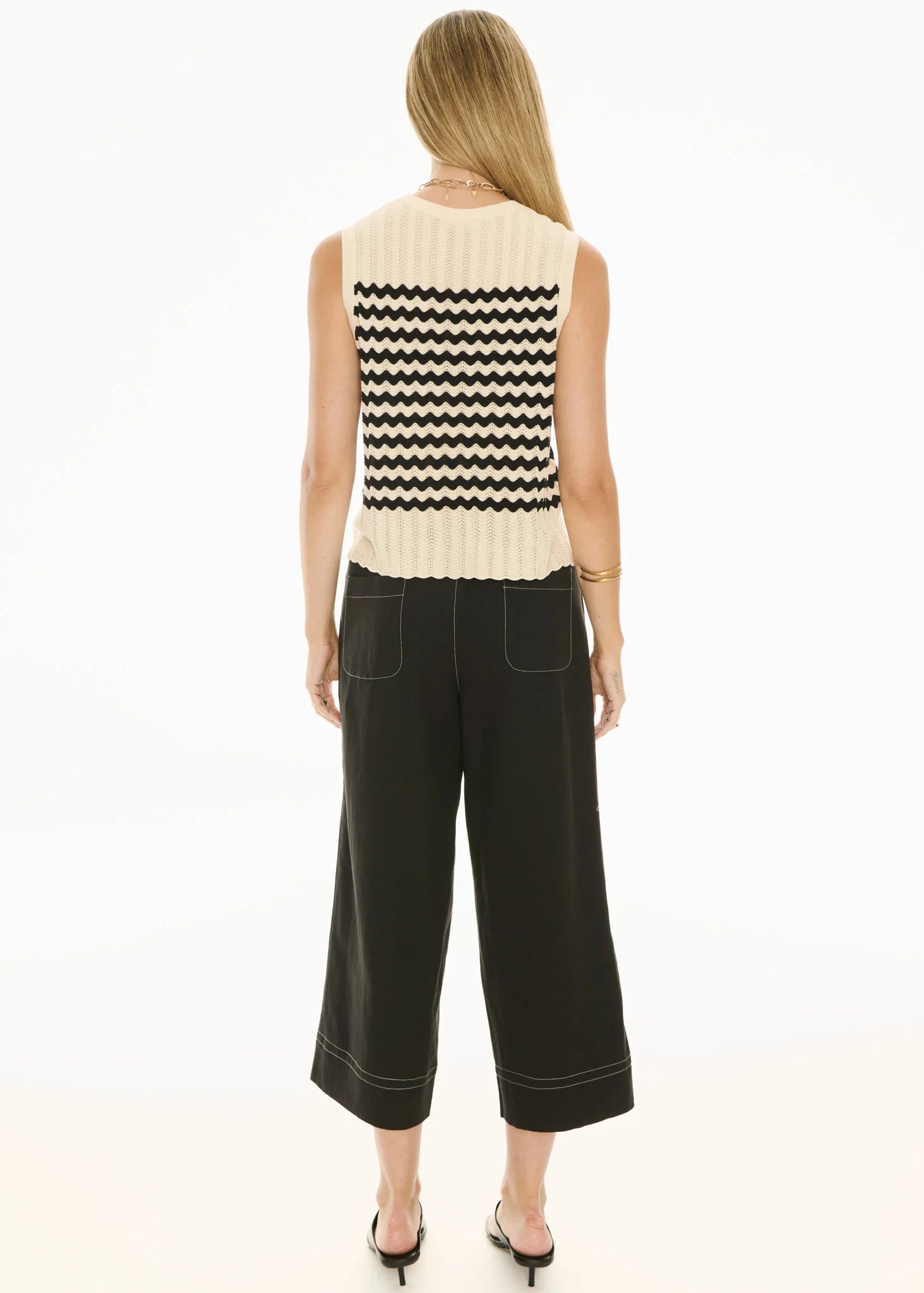 -Frankie is 180cm tall wearing a size 8 in the Ecru and Pink. Juliette is 182cm tall wearing a size 8 in Black.