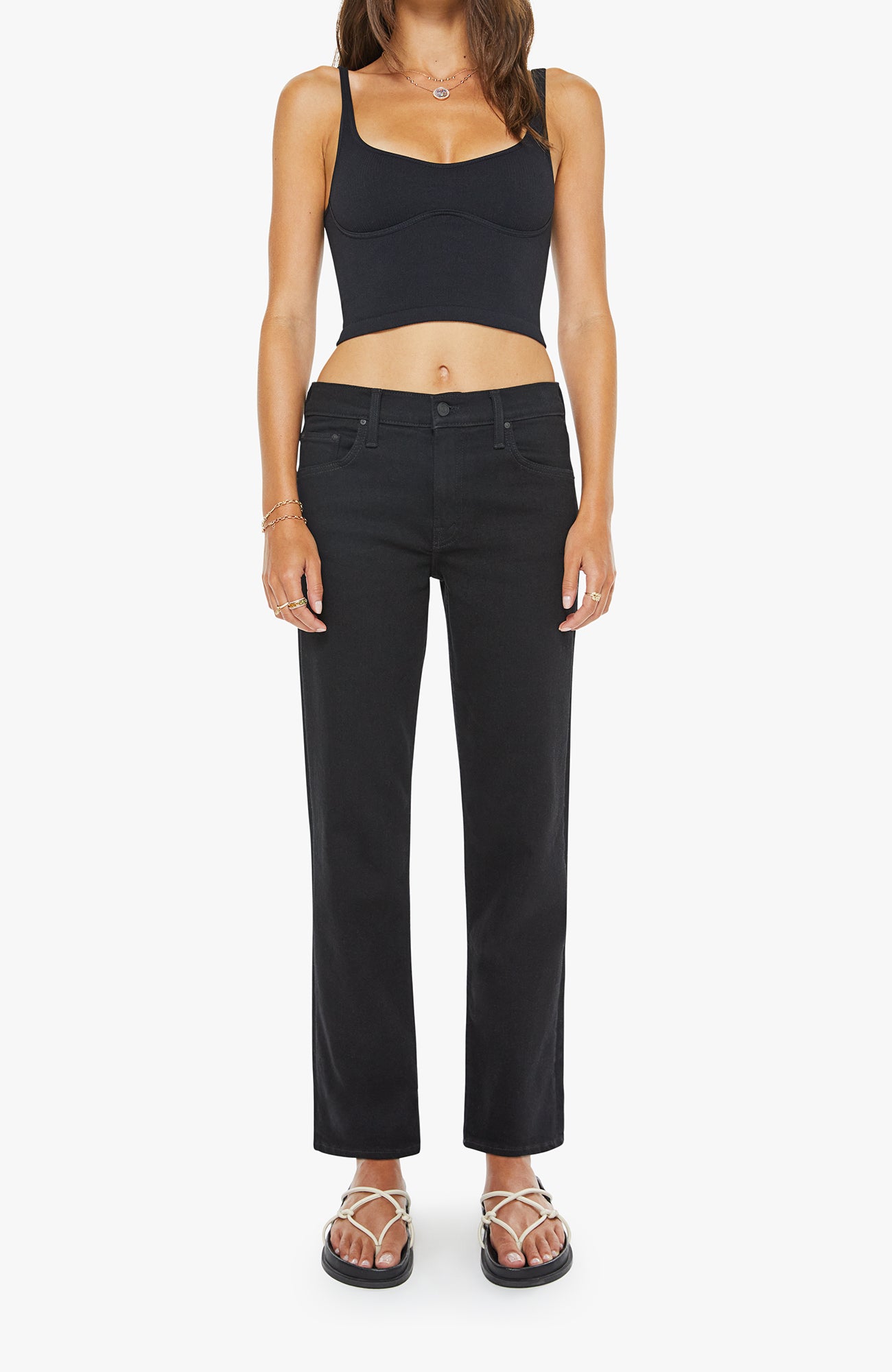 Lights out. Mid-rise jeans with a zip fly, straight leg, 29-inch inseam and a clean hem. Made from stretch denim, Nighty Night is a true black with tonal hardware.