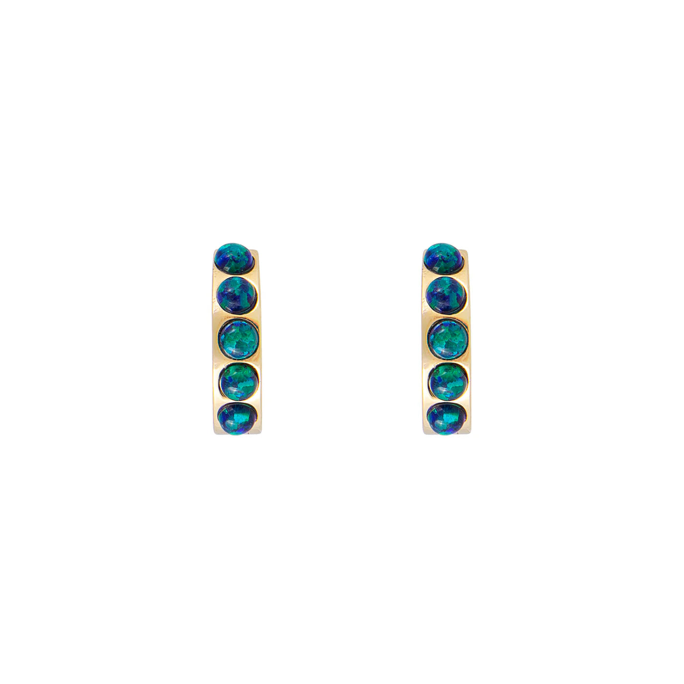 Add a vibrant pop of colour to your jewellery collection with the Jade Opal Crystal Huggies. Featuring dazzling jade-hued opal crystals set in a high-polish gold finish, these huggie earrings strike the perfect balance between playful charm and everyday sophistication. The compact hoop design hugs the earlobe comfortably, making them ideal for stacking or wearing solo.