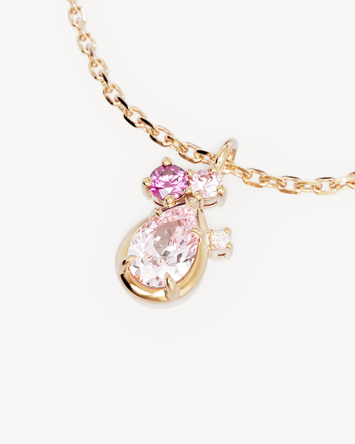 Delicate cluster design featuring pink cubic zirconias inspired by the power of love.