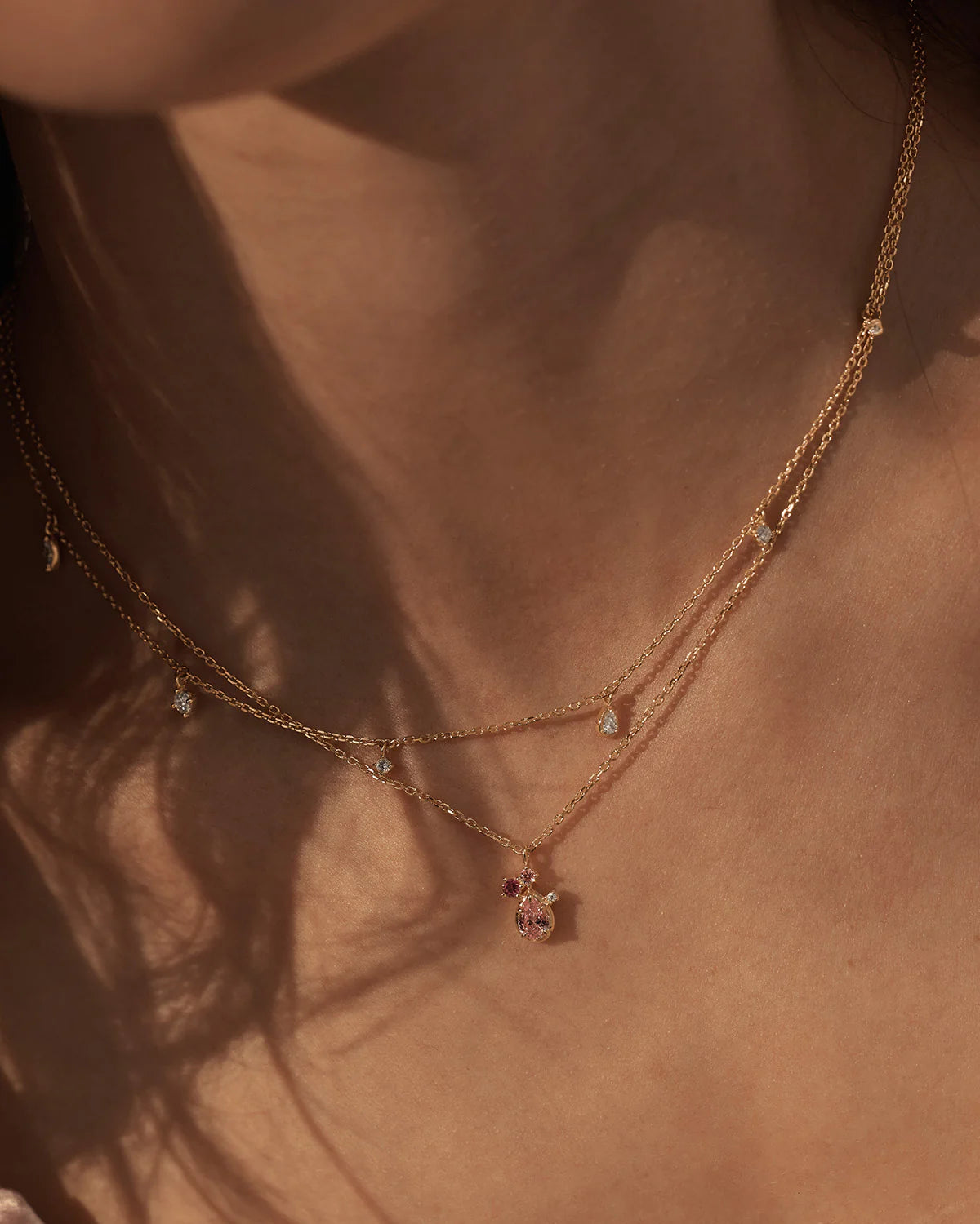 The Scattered Light Choker is inspired by the sun and the glistening of light on garden dew drops, celebrating uninhibited joy and freedom. Wear this keepsake as a reminder to never let your light within dim.