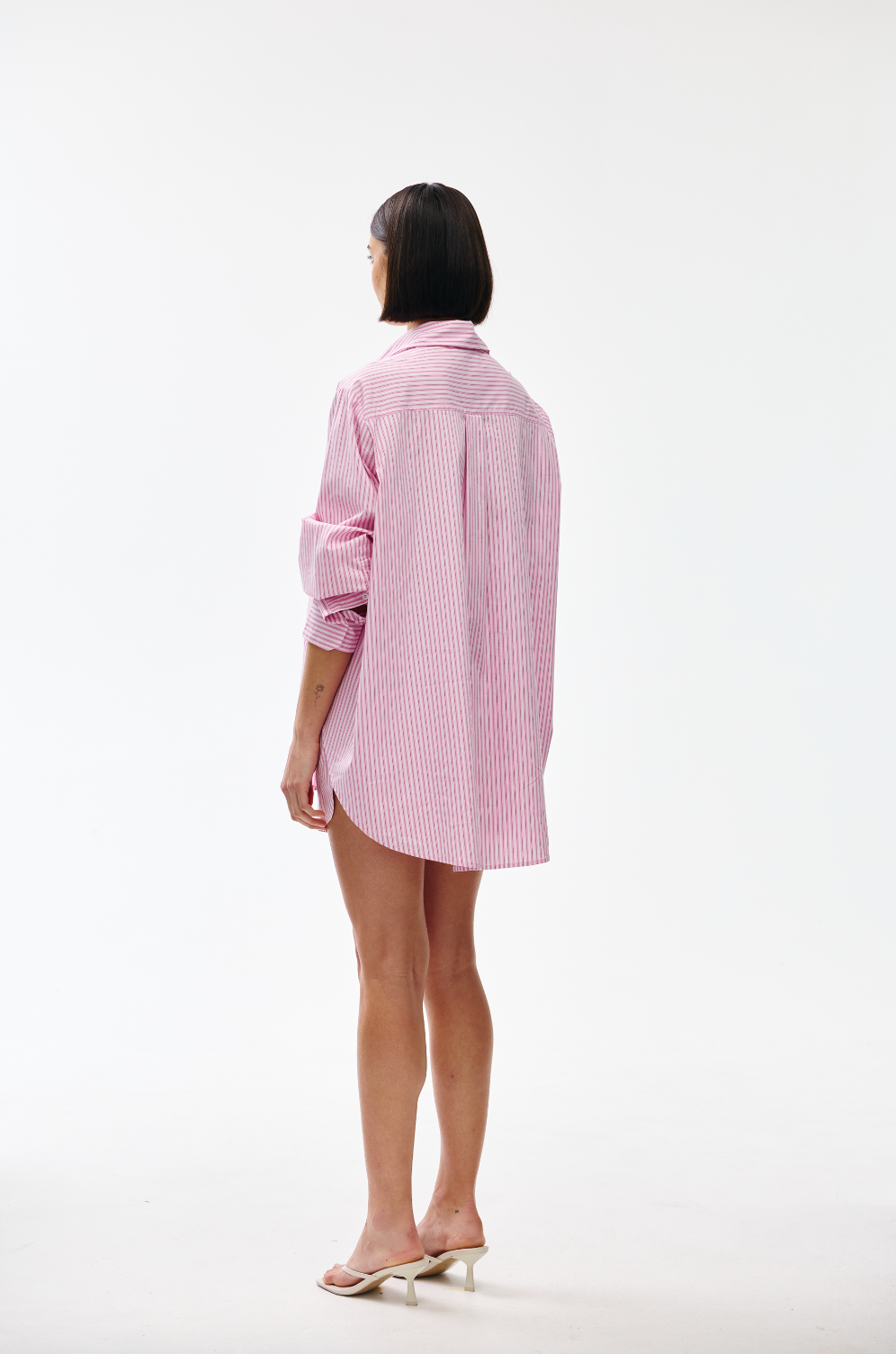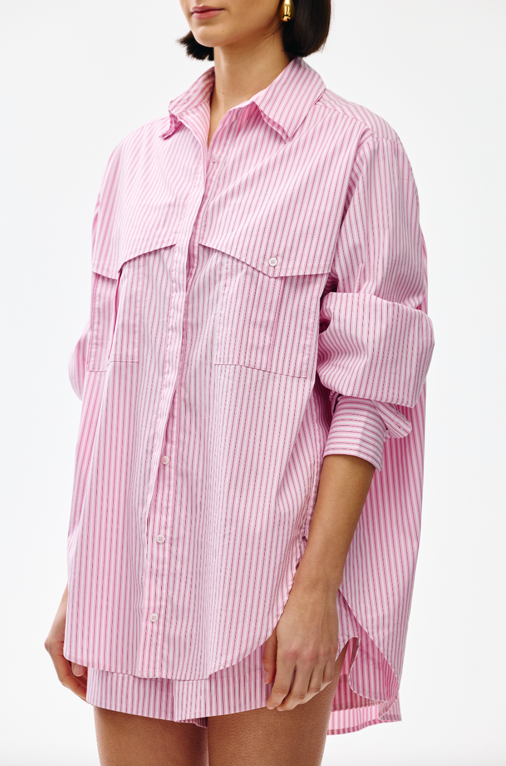 Kinney, Riley Shirt | Pink Pinstripe - M is backordered and will ship as soon as it is back in stock.