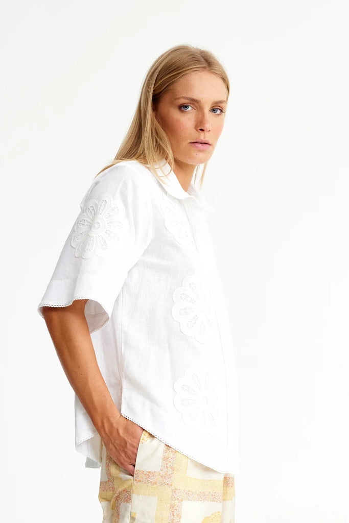 Like the famous dancing breed it’s named for, this shirt is all about graceful, controlled showmanship. Just like you managing work, life, family with aplomb. Crisp linen with circles of crochet appliqués, it adds polish & something special. Spill the high tea and giddy-up, darling, we have done this one before as its such a winner. Get it in both colours. (Sky Blue & White.) Tick.