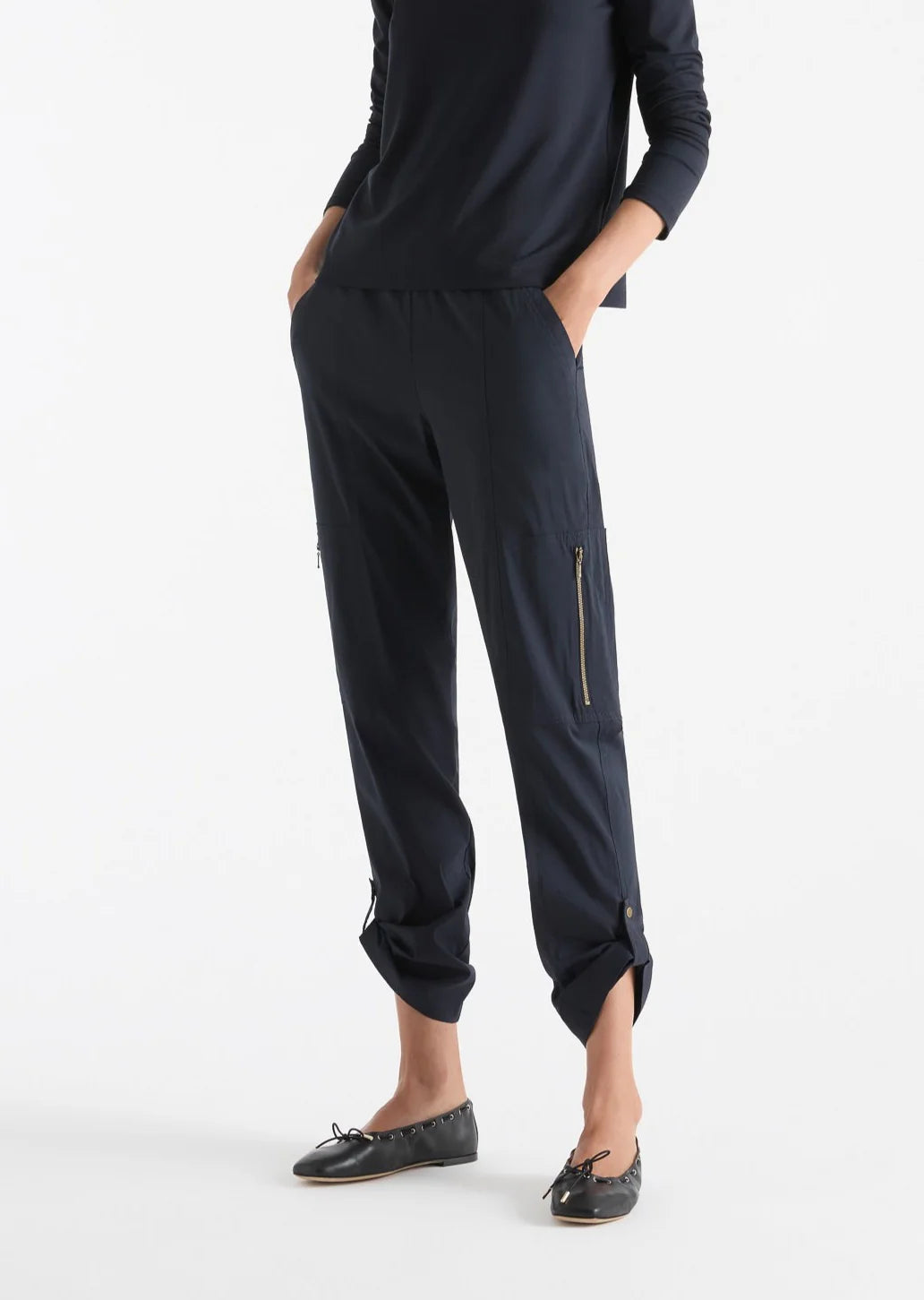 Crafted in Microprene, Mela Purdie's crisp and comfortable stretch cotton blend. The Zip Cargo brings a utility approach to a classic pant.