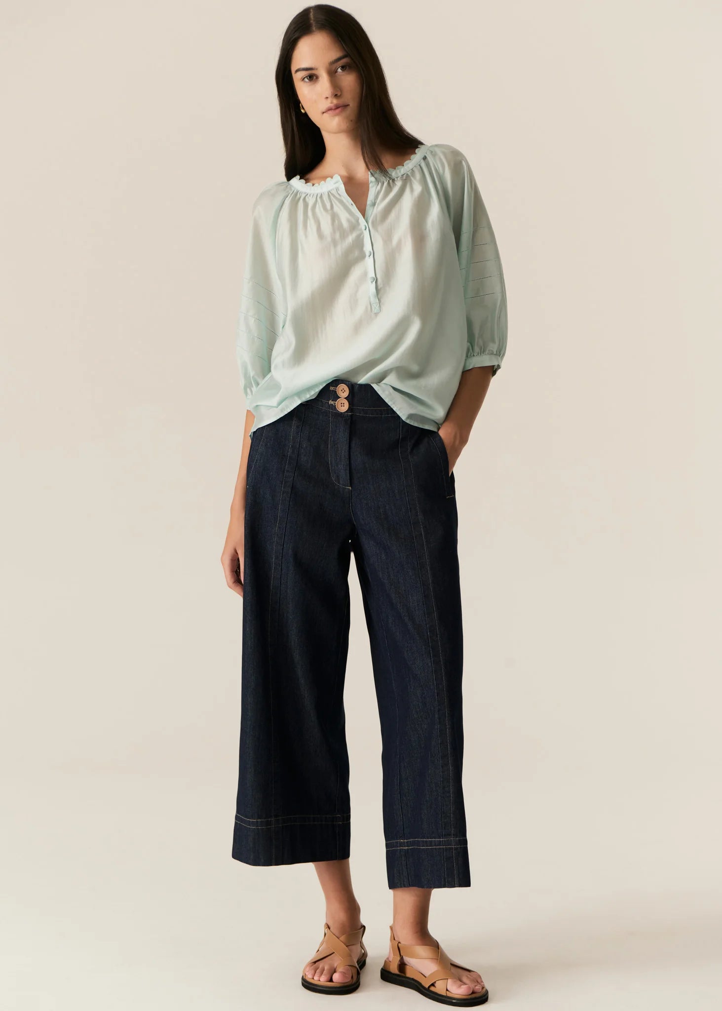 Our bestselling Raydel silhouette is back with a new name and updated colours! Featuring an elasticised waist, wide, cropped leg and made from 100% cotton, the Carsen Crop Denim Pant style is the perfect mix of comfortable and polished.