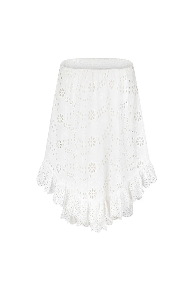 The Yaya Lace Scarf Mini Dress in Vintage White blends playful charm with delicate craftsmanship. Made from 100% organic cotton scallop lace, it features an elastic upper bust edge and underbust lining for a comfortable, flattering fit. The handkerchief hem and scallop trim add a whimsical, flowing silhouette that dances with every step—perfect for adding a lighthearted, feminine touch to your wardrobe. Style on its own or layer over the Yaya Lace Pant for maximum chic vibes.