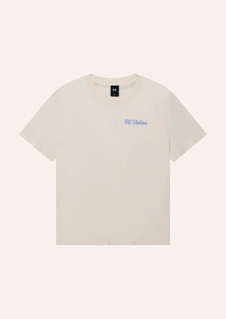 The Formation Tee 2.0 in Whisper White is made from a lush 100% heavyweight cotton jersey, this tee features an relaxed silhouette and a P.E Nation seasonal graphic print on front and back. The ideal lounging piece, style yours with track pants or bike shorts.